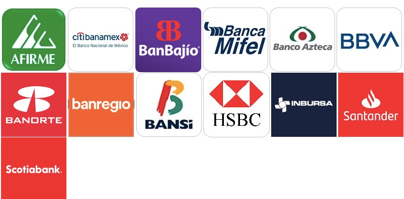 - USB: BANAMEX, BANBAJIO, BANORTE-IXE (únicamente en sucursales IXE), BANSÍ, HSBC e INBURSA.